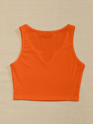 Flirla لباس علوي تانك محبوك مضلع وبياقة بفتحة