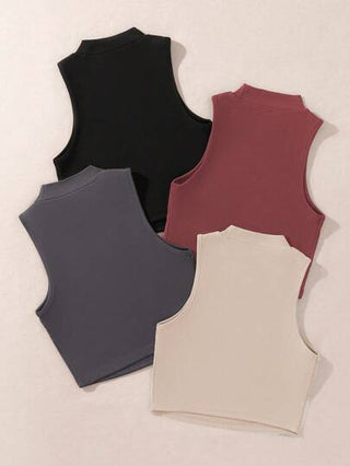 Flirla لباس علوي تانك موحدة اللون وقوف الياقة محبوك مضلع 4 قطع