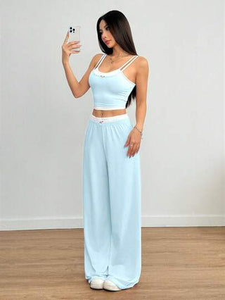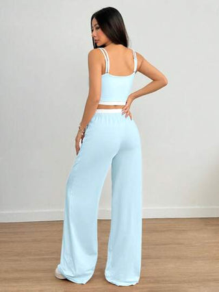 Flirla مجموعة رياضية أمريكية عادية مكونة من قطعتين، توب بدون أكمام رمادي وبنطال طويل ديكور بأزهار منقوش على الخصر المتوسط، ملابس نسائية صيفية