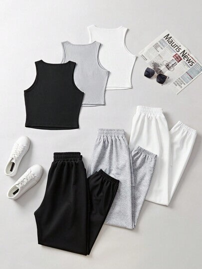 Flirla مجموعة من قطعتين للنساء، توب تانك بلون سادة مع بنطال جوجر