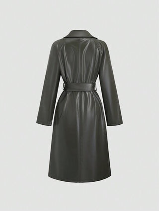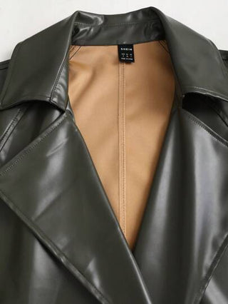 Flirla معطف بسترة فينتاج مزيف من الجلد للنساء، جاكيت واسعة الملائمة متوسطة الطول، لون أسود، جودة عالية، للخريف والشتاء