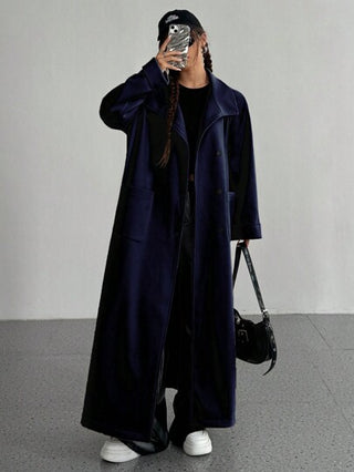 Flirla معطف طويل أنيق بأكمام طويلة ذو لون أحادي للنساء، مناسب للخريف والشتاء