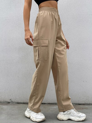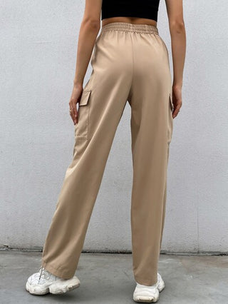 Flirla بناطيل كارجو للنساء ذات لون واحد للاستخدام اليومي مزودة بجيوب