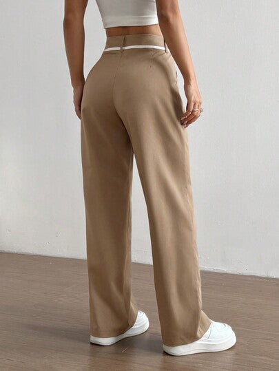 Flirla بنطال نسائي عادي بخصر ملون، ساق مستقيمة