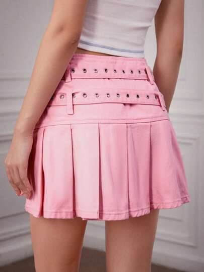 Forever 21 تنورة دنيم قصيرة زهرية بشقوق مع حزام مشبك