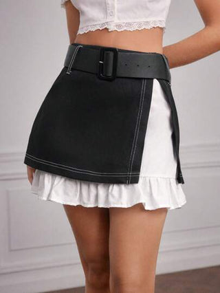 Forever 21 تنورة نسائية بمشبكين لونية منقوشة بالزنبق و الوردي بحزام