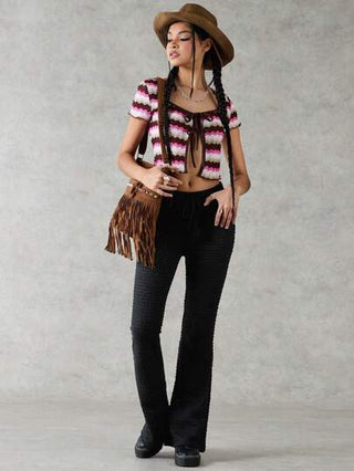 Forever 21 سروال نسائي فضفاض مناسب بلون سادة مع نسيج