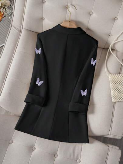 Franclia بليزر للنساء للارتداء في المكتب بياقة واسعة وأكمام طويلة مطبوع عليه فراشات للربيع/الخريف