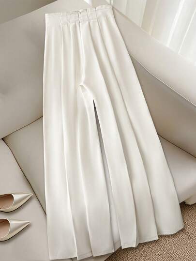 Franclia بنطلونات نسائية فضفاضة واسعة الساق بطيات ذات لون أحادي كاجوال
