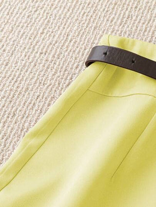 Franclia تنورة بحزام لون أبيض بسيط بتصميم جيب زائف، متعددة الاستخدامات للذهاب إلى العمل