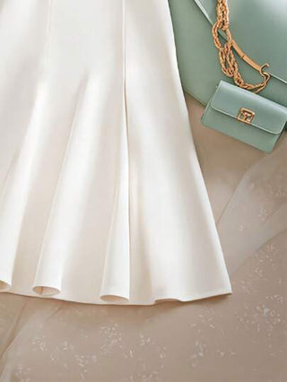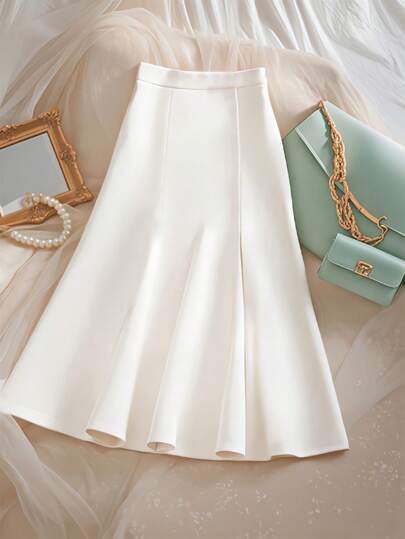 Franclia تنورة بيضاء أنيقة بسيطة ذات قصة متسعة للنساء