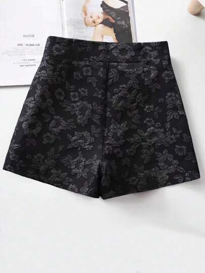 Franclia شورتات نسائية كاجوال عصرية ذات خصر مرتفع ومخملية بأزرار معدنية وبطبعات الأزهار، للربيع / الصيف