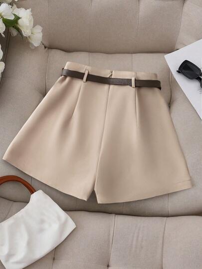 Franclia شورت نسائي عصري أحادي اللون بتصميم جيوب مزيف مع حزام