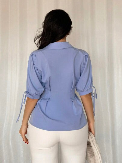Franclia قميص أنيق بأكمام قصيرة، بلوزة بأكمام منتفخة خصر نحيف، تُظهر جمال المرأة