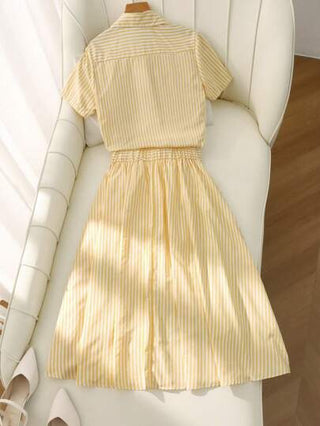 Franclia مجموعة من 2 قطعة بلوزة ياقة بولو أكمام قصيرة مخططة وتنورة عالية الخصر