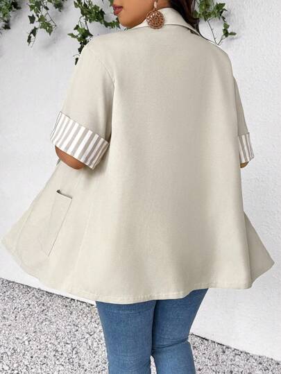 Frenchy بلايزر ممتلئة النسائي مفتوح الصدر قصير الأكمام من الكتان قديم الطراز المتواضع