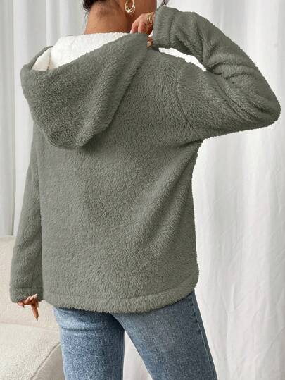 Frenchy بلوفر نسائي بياقة نصفية على الأزرار وأكمام طويلة فضفاضة للشتاء/الخريف، قماش فوري لون أحادي
