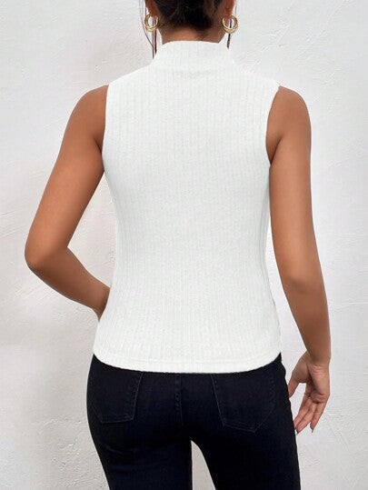 Frenchy قميص بدون أكمام و ذو ياقة للصيف من لون واحد