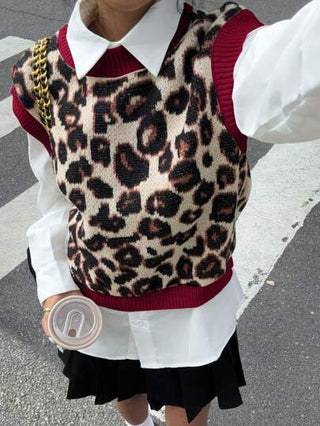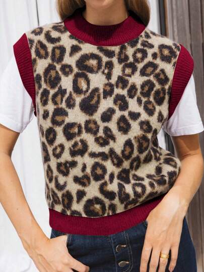 Frenchy كنزة صوفية كاجوال فضفاضة من الصوف مع بطانة ذات طبعة نمرة للسيدات، باستثناء القميص