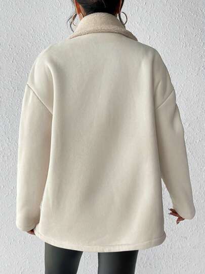 Frenchy معطف بياقة مطوي مسنن منخفض الاكتاف بطباعة تيدي سستة