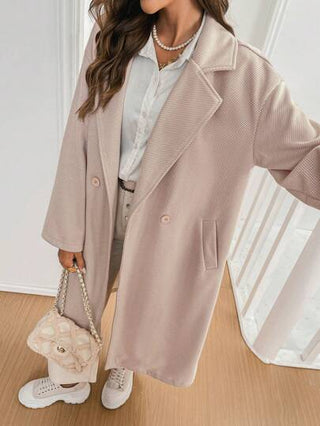 Frenchy معطف صوفي ذو طوق للنساء باللون الأحادي الكاجوال، الخريف والشتاء