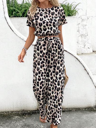 Frenchy ملابس علوية بأكمام لينة بنمط الفهد وبنطلون