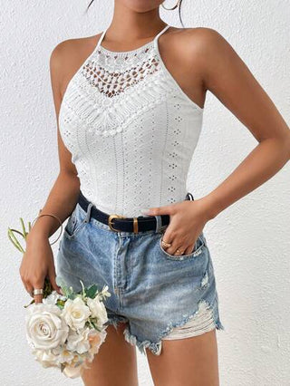 Frenchy ملابس علوية بلا أكمام للصيف مع تطريزات مجوفة من لون موحد