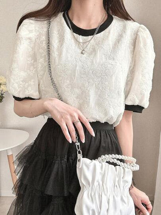 FRIFUL بلوزة نسائية بياقة مستديرة وأكمام منتفخة فضفاضة مع لوني التباين