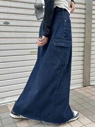 FRIFUL تنورة جينز متوسطة الطول مزينة بجيوب ، طبيعية وأنيقة للبس اليومي للنساء