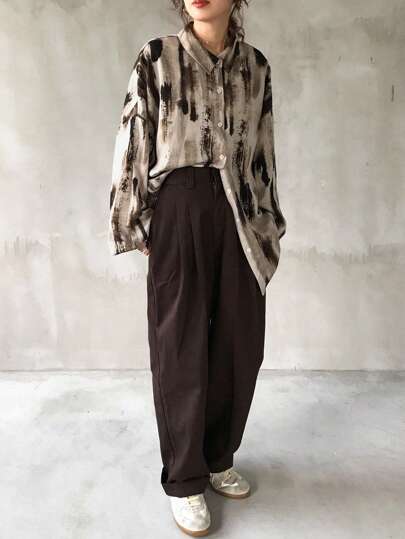 FRIFUL قميص فضفاض بطباعة نسائي كاجوال، أكمام طويلة للربيع والخريف