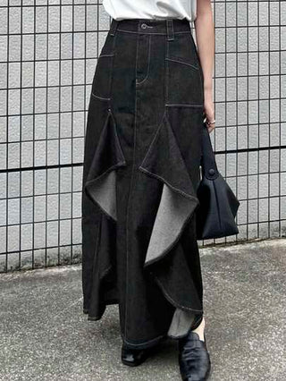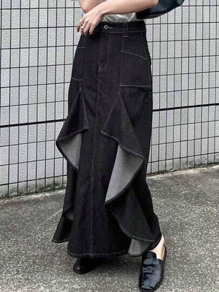 FRIFUL تنورة جينز متعددة الطبقات مع لمسات كشكشة وتدرجات لون, مقطوعة من الجانب