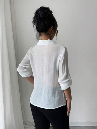 Gloray بلوزة كاجوال للسيدات مصنوعة من الكتان الاصطناعي مع أكمام مكشكشة