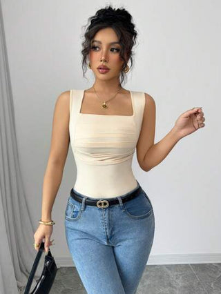 Gloray توب كاجوال أنيق ذو لون أحادي بدون أكمام، منسدل وبسيط للنساء