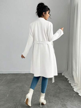 Gloray معطف نسائي لون أحادي الصناعي الغامق مزدوج الصدر بجيوب جانبية طبيعي