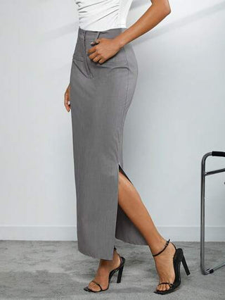 Hauture تنورة صفّ أمامي بسحّاب ذات لون أحادي للنساء، أعمال رسمية كاجوال