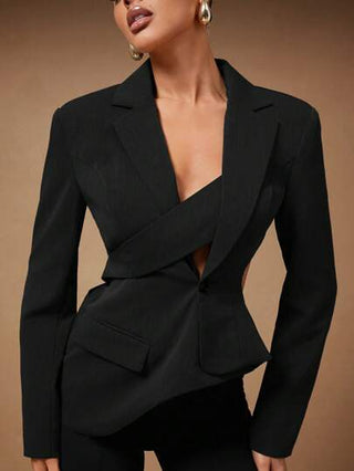 Hauture جاكيت أنيقة وجذابة قصيرة الخلف ذات لون أحادي وذيل غير متماثل