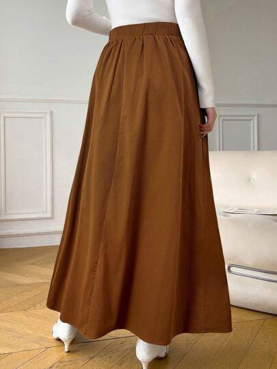 Heiryn تنورة طويلة منقولة بألوان أحادية للنساء لارتداء اليومي/المكتبي