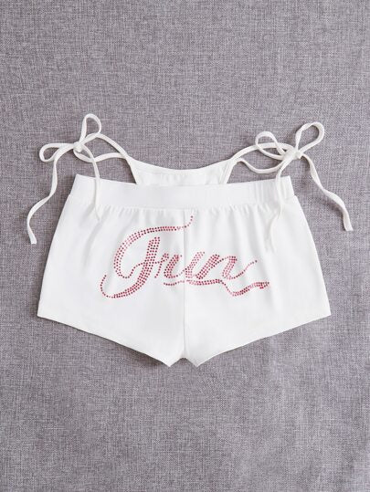 ICON بنطلون قصير حجر الراين بطباعة أحرف مقصوص الخصر