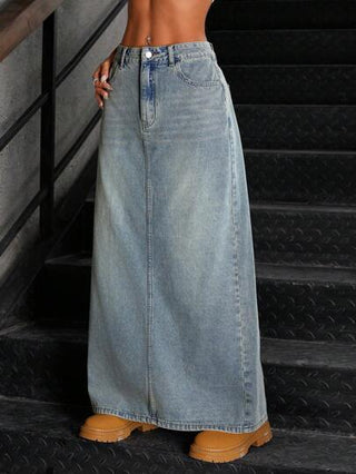 ICON تنورة جينز مستقيمة فضفاضة طويلة للنساء مع جيوب