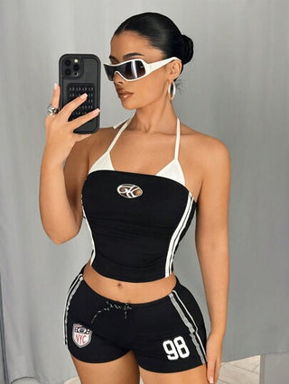 ICON ملابس علوية أنبوبي بدون أكمام بربطة عنق ولون متباين، نمط رياضي للاستخدام اليومي للنساء، ملابس نسائية لاطلالة كاجوال وخروج أو جيم