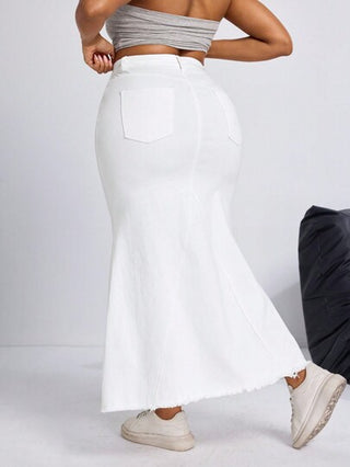 ICON تنورة جينز ماكسي كاجوال ذات ذيل السمكة للسيدات ذوات الحجم الكبير