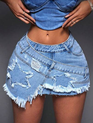 ICON تنورة جينز ممزقة بحاشية غير مدروزة