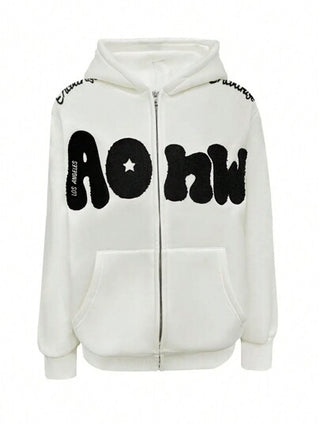 INAWLY بلوزة رياضية نسائية مطبوعة عليها حرف مع سحاب أمامي وغطاء للرأس ، آستين طويل