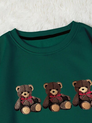 INAWLY بلوزة كاجوال طويلة الأكمام بتفاصيل طباعة دب للسيدات بياقة دائرية