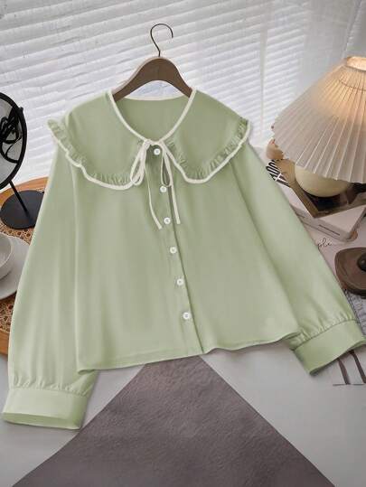 INAWLY بلوزة نسائية ذات لون واحد مع حلية مكرر أمامية علاقة عارضة