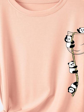 INAWLY بلوزة نسائية فضفاضة قصيرة الأكمام مطبوعة