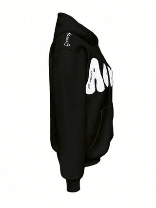 INAWLY بلوزة نسائية قطعة واحدة كم طويل ذات سوستة وقلنسوة مطبوع عليها حرف، مناسبة لفصلي الخريف والشتاء