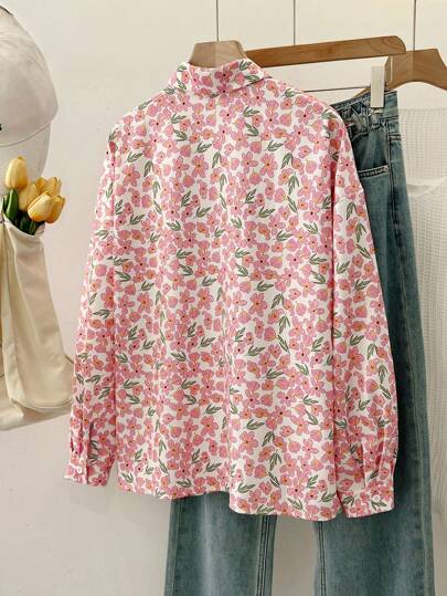 INAWLY بلوزة نسائية كاجوال فضفاضة ذات أكمام طويلة وأزرار أمامية برسم الأزهار