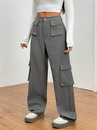 INAWLY بنطلون سيدات كاجوال فضفاض بلون أساسي بسبب