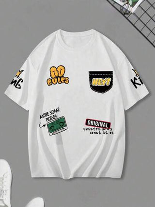 INAWLY تي شيرت كاجوال بأكمام قصيرة مطبوع عليه شعار للمقاسات الكبيرة، تصميم بسيط للصيف